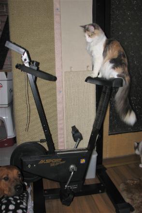 Norwegische Waldkatzen aus dem Schattenwald sind auch seeehr auf ihre Fitness bedacht! Wie komme ich bloß an die Pedale???